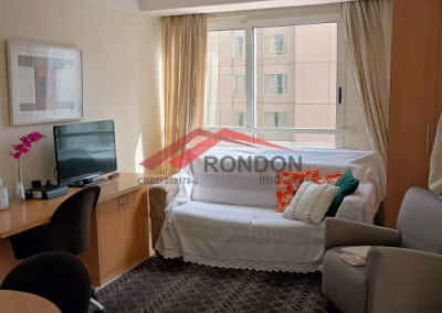 O único Flat no condomínio com área externa aberta integrada com o apartamento.
