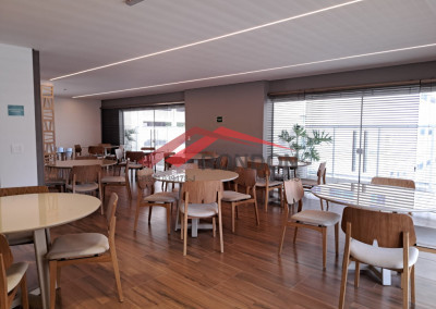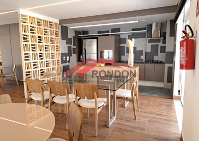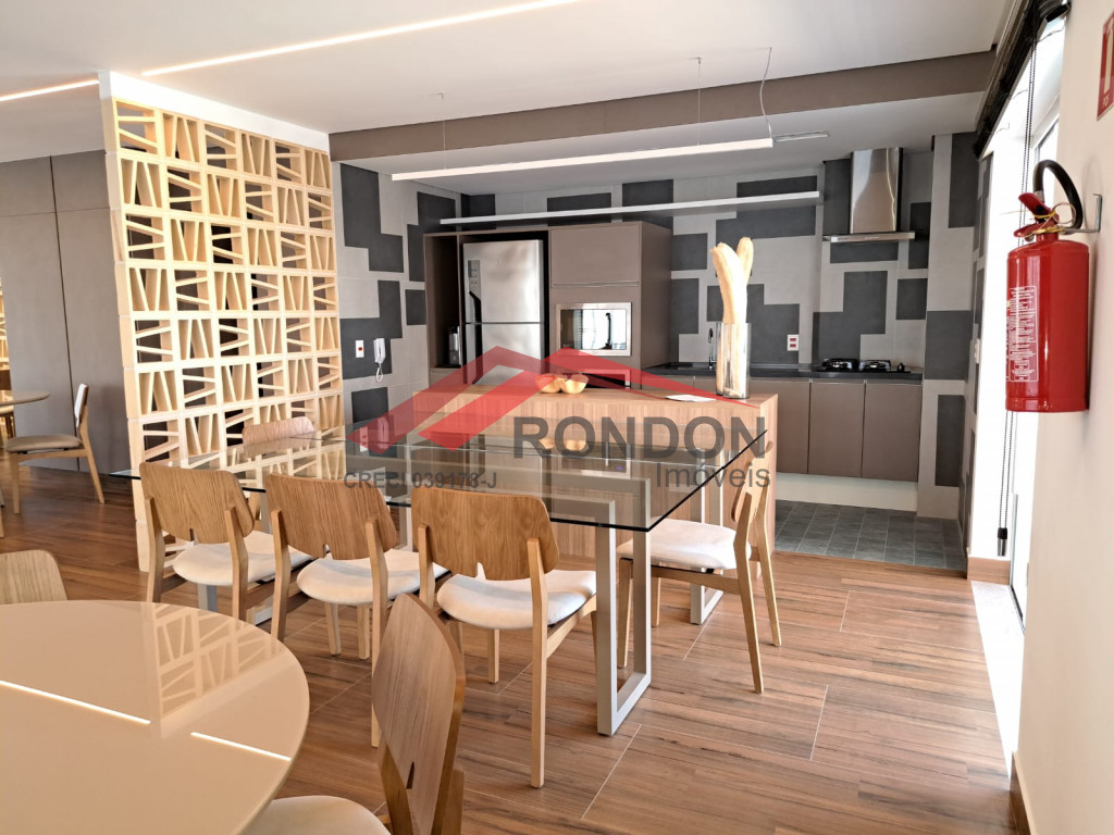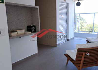 O imóvel tem 2 dormitórios, sendo 1 suíte, 1 banheiro social, cozinha, sala de jantar/estar, área de serviço, varanda gourmet e 1 vaga de garagem.