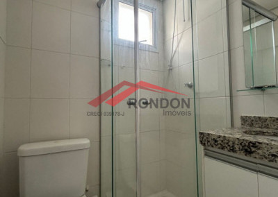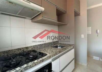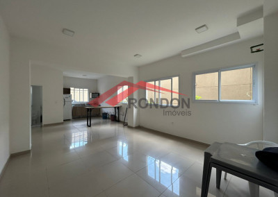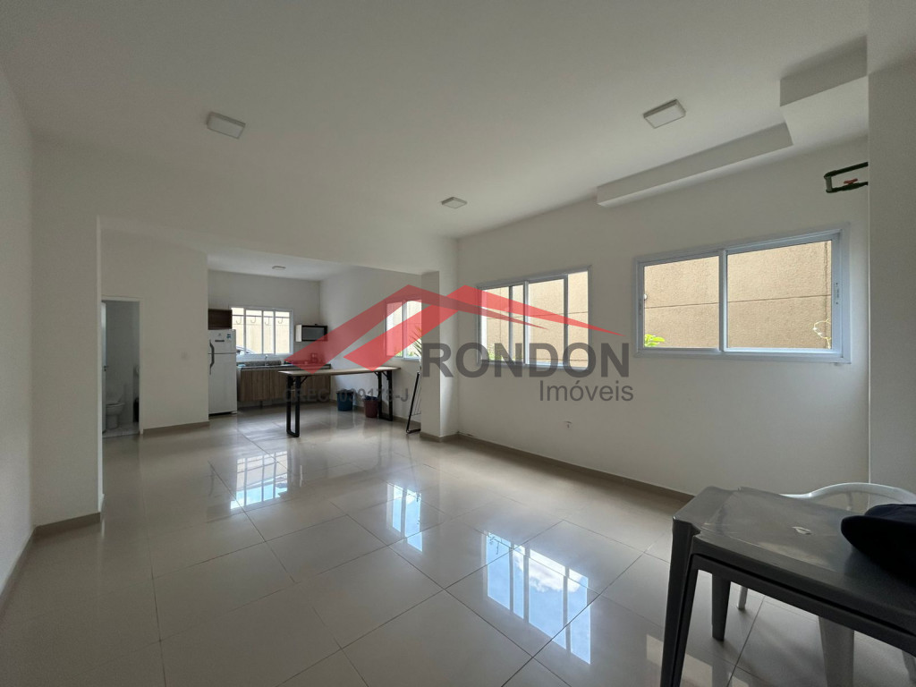 O condomínio conta com área comum, salão de festas, elevador, interfone e câmeras de segurança.