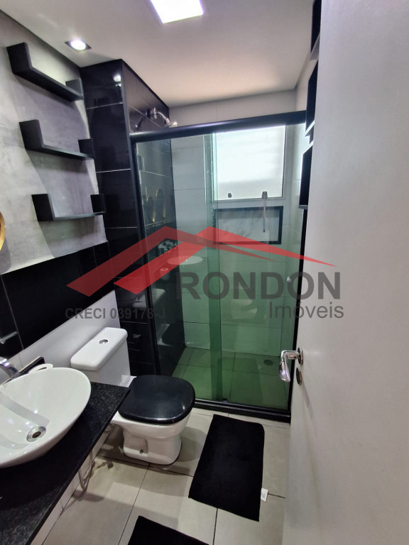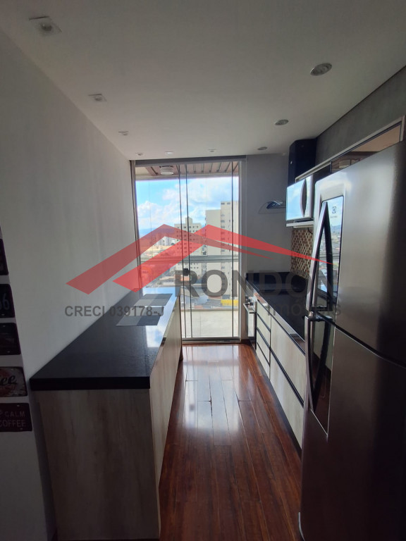 O condomínio oferece portaria 24 horas, piscina, academia, salão de festas, churrasqueira, sauna e espaço gourmet.