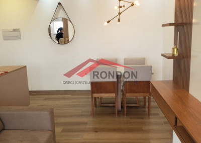Móveis planejados na cozinha e sala, apartamento com fino acabamento.